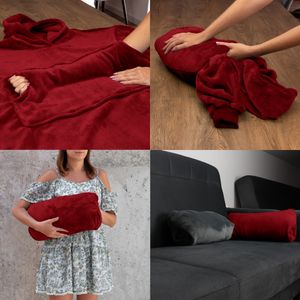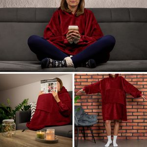 Bluzair Bluza Koc Oversize Kaptur Polska Bordowy