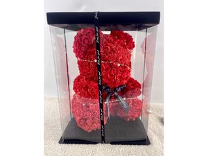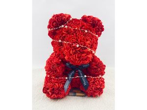 - Miś w kolorze czerwonym, wykonany z ok. 600 piankowych róż