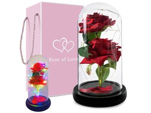wieczna róża w szkle świecąca led rgb prezent na okazję dla kobiet czerwona