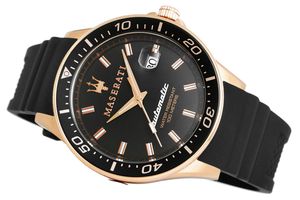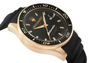 Zegarek posiada wygodny silikonowy pasek, który zapewnia komfort codziennego użytkowania. Silikon doskonale dopasowuje się do nadgarstka, a zapięcie sygnowane logo Maserati podnosi prestiż zegarka.