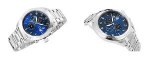 Tarcza: Analogowa, z chronografami czasu dobowego 24h, dual time, dni tygodnia oraz datownikiem dni miesiąca